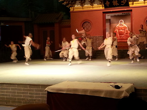 下午,我們驅(qū)車(chē)趕往登封,參觀(guān)了號(hào)稱(chēng)“禪宗祖庭”、“天下武功出少林”的嵩山少林寺。雖然在這里只逗留了短短的幾個(gè)小時(shí),但也深深地感受到了禪宗文化。晚上的《禪宗少林·音樂(lè)大典》山地實(shí)景演出,規(guī)模宏大,音畫(huà)一體,上百人的禪武演繹,春夏秋冬的景觀(guān)變化,直指心性,讓我們這一行人備受震撼。