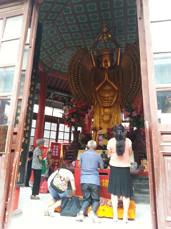 第三天,我們來(lái)到了中華民族歷史發(fā)源地、中國(guó)文化搖籃的黃河南岸,一座歷史文化悠久的古城--汴梁開(kāi)封。我們先行來(lái)到的是開(kāi)封市中心的大相國(guó)寺。大相國(guó)寺是中國(guó)著名的佛教寺院,被稱(chēng)為中原四大名寺。這里最震撼的便是清朝一無(wú)名氏花費(fèi)50多年雕刻出的千手千眼佛。